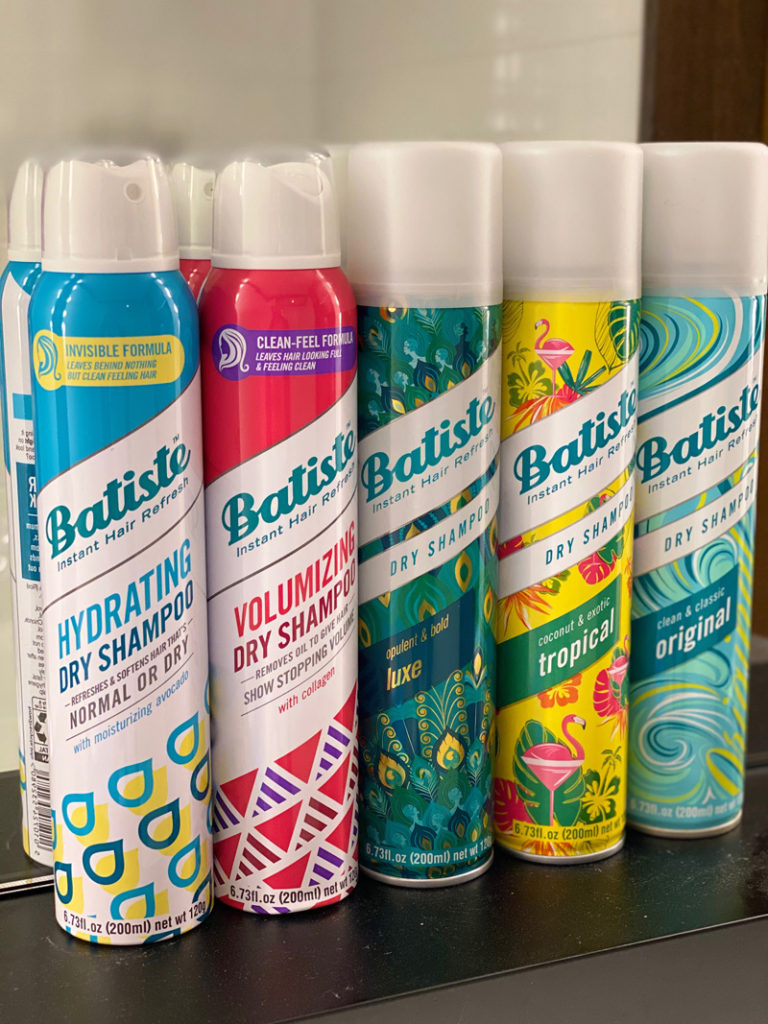 So this is how I use it…I was my hair and then every night before I go to sleep, I section it off and spray each section with dry shampoo so it absorbs any oils that may accumulate over night. Then, I spray again in the morning before I style my hair. (Repeat this routine for the next 3 days). Depending on my work schedule, I can usually go for a few days using dry shampoo before having to rewash my hair. Dry shampoo has come a very long way since the 1970’s original formula. Now they have tons of different scents and colors depending on your type of hair. If you haven’t tried dry shampoo, now is the perfect time! Loving the latest products from Batiste featured below!