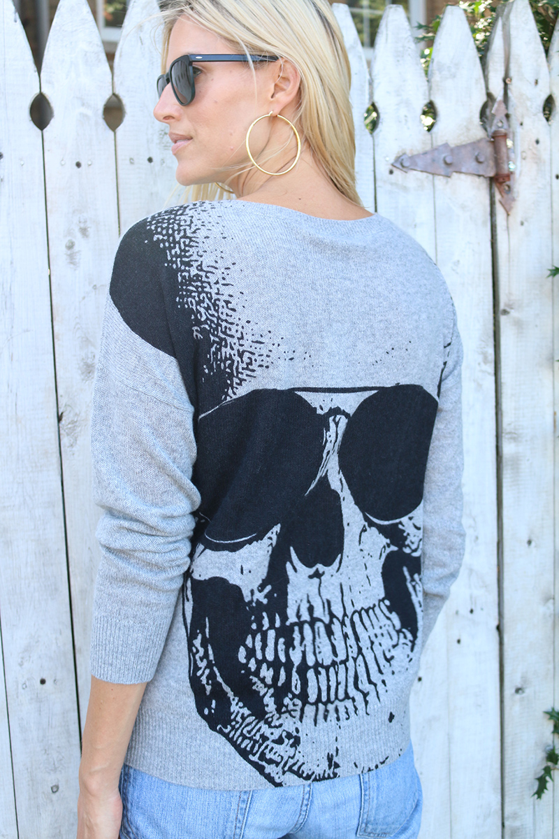 So I’m kind of obsessed with this sweater! Who would have thought that skulls would be so mainstream and cool?!? They really are the ultimate fashion statement! Whether you are ready or not, sweater weather is almost here. This is the perfect cashmere sweater; ideal for the not too cold but not too warm weather we are currently experiencing! It’s cozy, soft and super sleek. I also love the fact that the front of the sweater is solid but as soon as you turn around, people are in for a surprise! Express yourself this season with fun and daring designs!